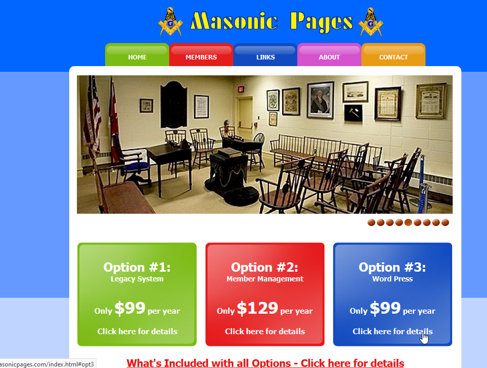 Masonic Pages, established, owned and operated by masons for masons. Our aim is to assist brother lodges to establish their presence on the internet. Offering many FREE Services for Masinc Organization, including Free Domain Registration, Free Website Hosting, and much much more....